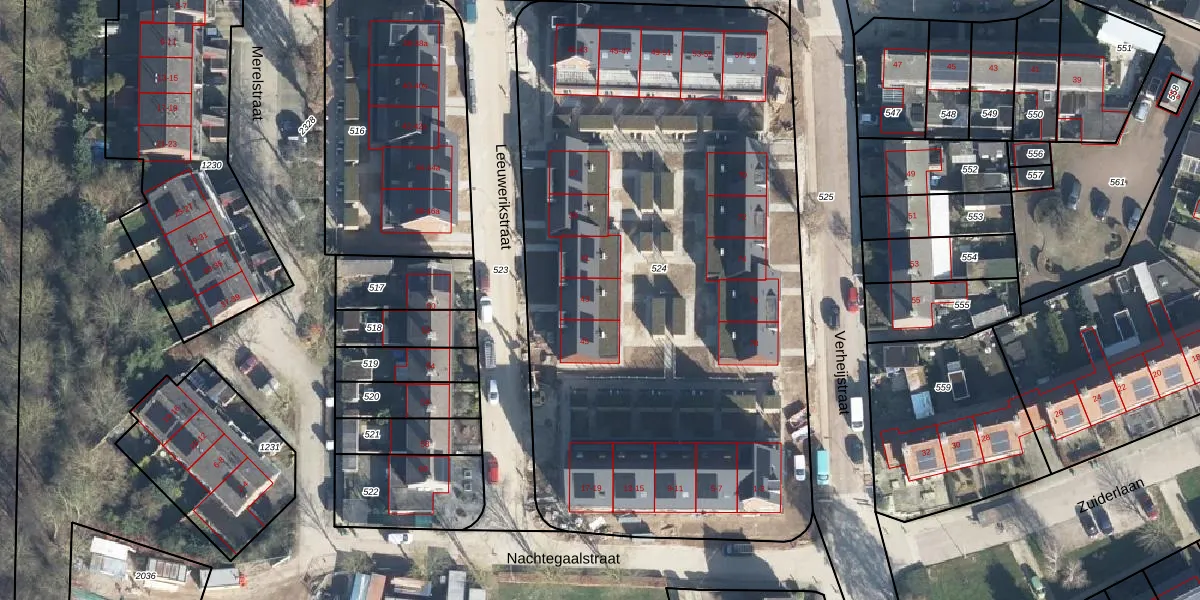 Het perceel waarop Leeuwerikstraat 43 staat heeft een oppervlakte van 4065 m². Dit is een zeer groot perceel. De perceeloppervlakte wordt geregistreerd door het Kadaster. Gedetailleerde informatie over de maten van dit perceel kunt u vinden in het rapport Kadastrale kaart met maatvoering van Leeuwerikstraat 43.