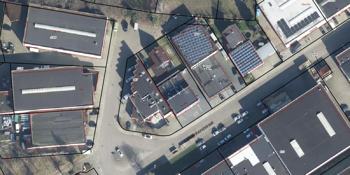 Het perceel waarop Lichtenhorststraat 19-a staat heeft een oppervlakte van 554 m². Dit is een groot perceel. De perceeloppervlakte wordt geregistreerd door het Kadaster. Gedetailleerde informatie over de maten van dit perceel kunt u vinden in het rapport Kadastrale kaart met maatvoering van Lichtenhorststraat 19-a.