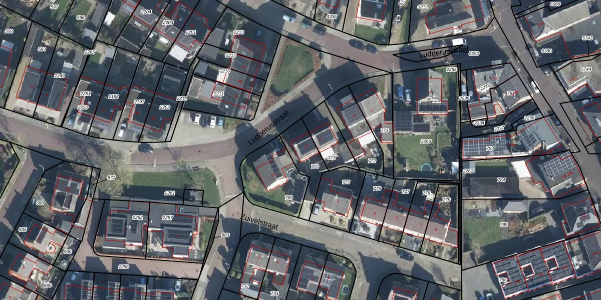 Het perceel waarop Ludgerusstraat 13 staat heeft een oppervlakte van 215 m². Dit is een middelgroot perceel. De perceeloppervlakte wordt geregistreerd door het Kadaster. Gedetailleerde informatie over de maten van dit perceel kunt u vinden in het rapport Kadastrale kaart met maatvoering van Ludgerusstraat 13.