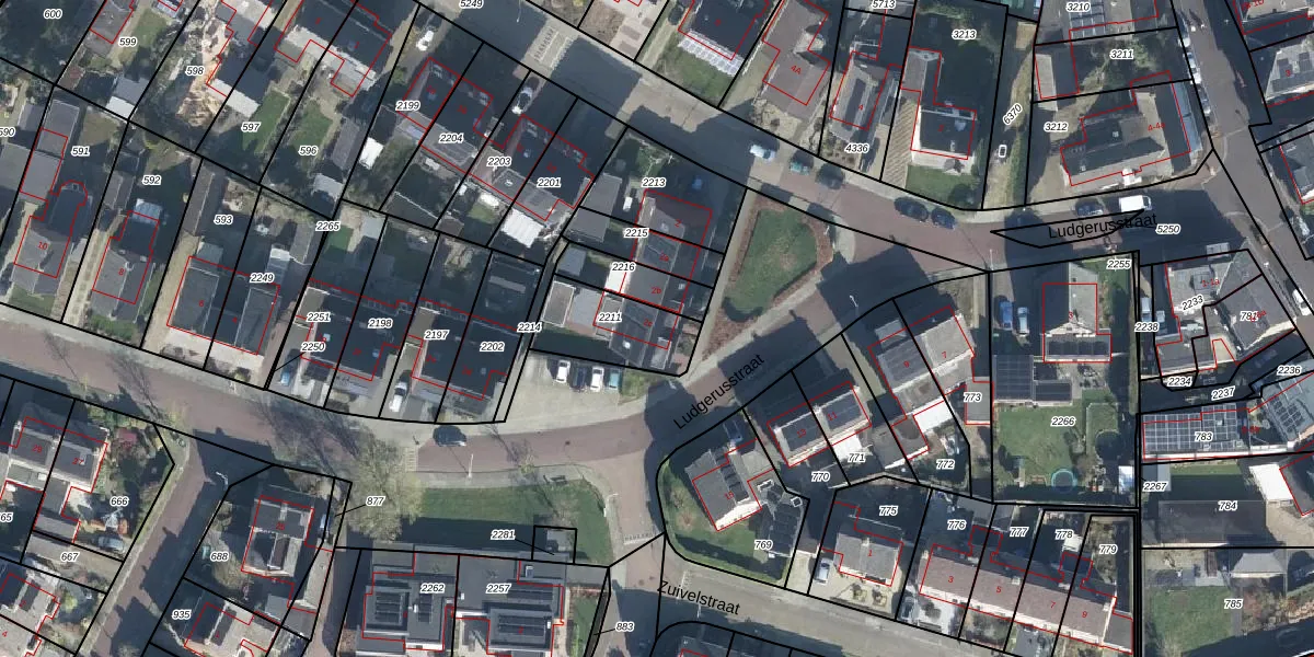 Het perceel waarop Ludgerusstraat 2-c staat heeft een oppervlakte van 250 m². Dit is een middelgroot perceel. De perceeloppervlakte wordt geregistreerd door het Kadaster. Gedetailleerde informatie over de maten van dit perceel kunt u vinden in het rapport Kadastrale kaart met maatvoering van Ludgerusstraat 2-c.