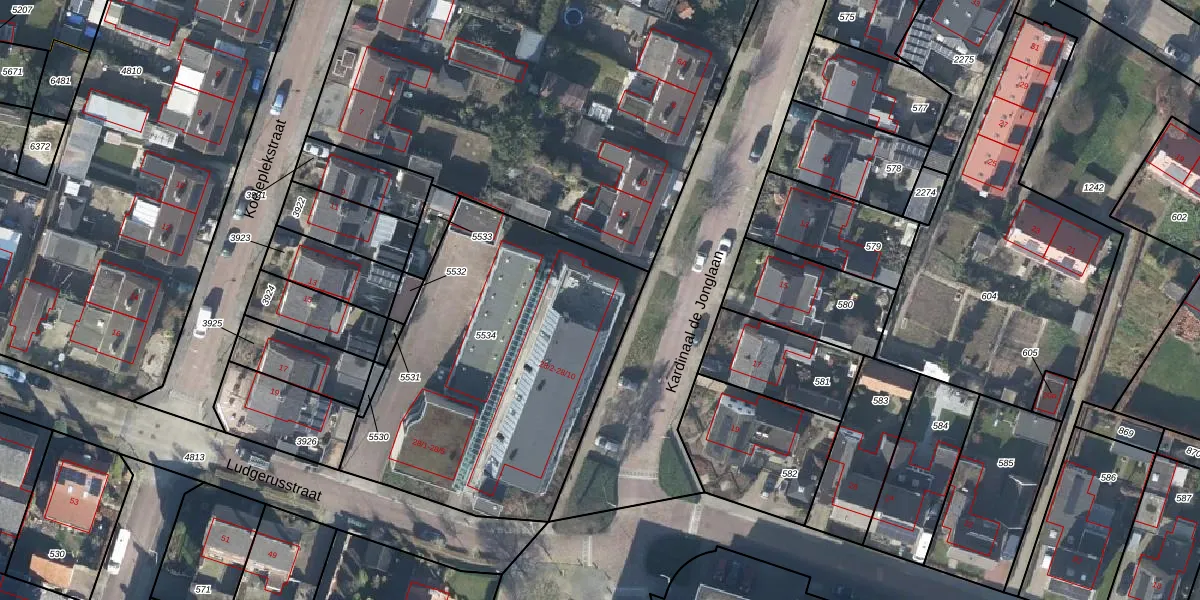 Het perceel waarop Ludgerusstraat 28-8 staat heeft een oppervlakte van 1708 m². Dit is een zeer groot perceel. De perceeloppervlakte wordt geregistreerd door het Kadaster. Gedetailleerde informatie over de maten van dit perceel kunt u vinden in het rapport Kadastrale kaart met maatvoering van Ludgerusstraat 28-8.