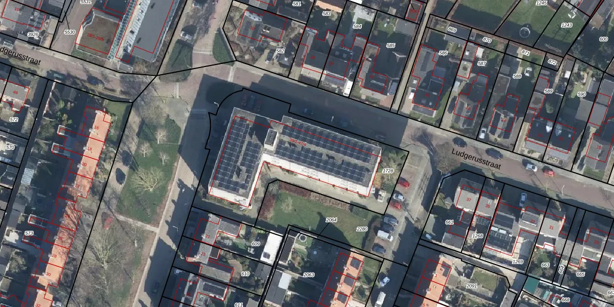 Het perceel waarop Ludgerusstraat 41-2 staat heeft een oppervlakte van 1785 m². Dit is een zeer groot perceel. De perceeloppervlakte wordt geregistreerd door het Kadaster. Gedetailleerde informatie over de maten van dit perceel kunt u vinden in het rapport Kadastrale kaart met maatvoering van Ludgerusstraat 41-2.
