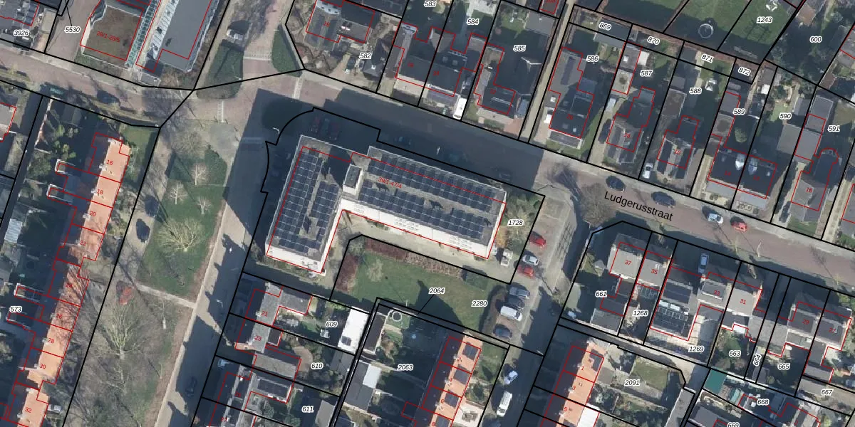 Het perceel waarop Ludgerusstraat 45-3 staat heeft een oppervlakte van 1785 m². Dit is een zeer groot perceel. De perceeloppervlakte wordt geregistreerd door het Kadaster. Gedetailleerde informatie over de maten van dit perceel kunt u vinden in het rapport Kadastrale kaart met maatvoering van Ludgerusstraat 45-3.
