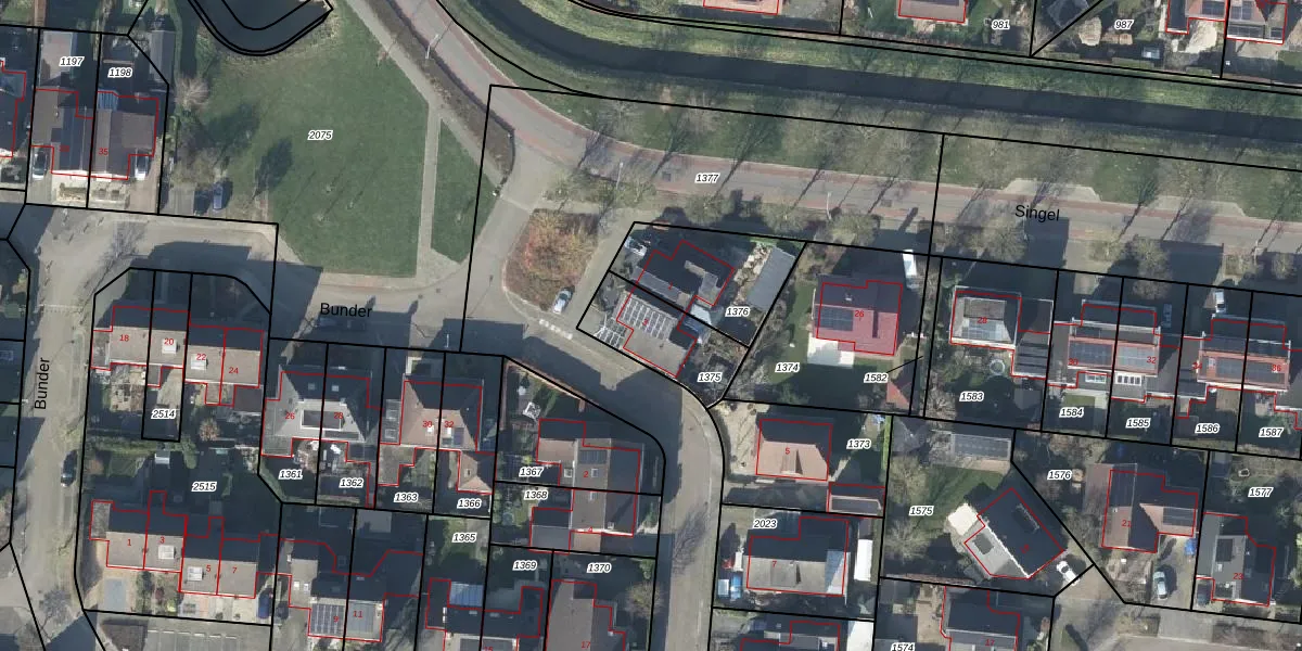 Gebruik de zoekbalk of klik op een perceel voor informatie over de adressen binnen dit perceel.