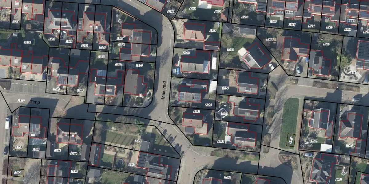 Maisveld 9 is gelegen op kadastraal perceel DDM00L2024. Deze kadastrale aanduiding is uniek en wordt gebruikt door het Kadaster om eigendomsrechten en andere zakelijke rechten vast te leggen. Het perceel maakt onderdeel uit van de kadastrale gemeente Didam.