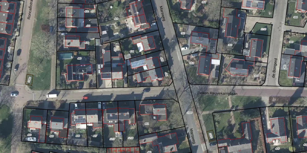 Gebruik de zoekbalk of klik op een perceel voor informatie over de adressen binnen dit perceel.