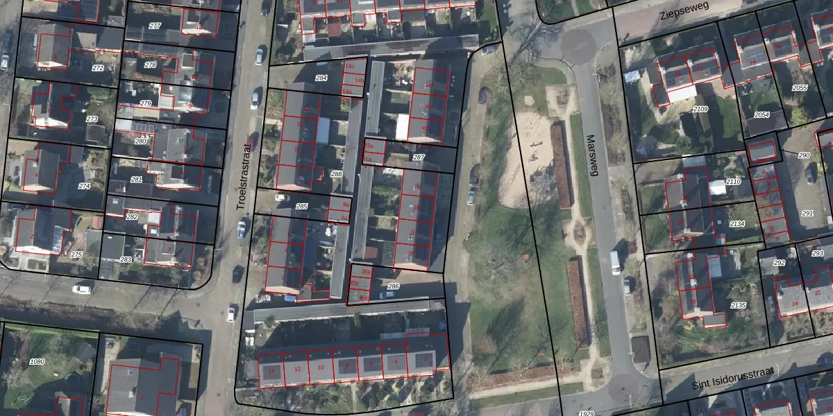 Marsweg 39 is gelegen op kadastraal perceel DDM00M288. Deze kadastrale aanduiding is uniek en wordt gebruikt door het Kadaster om eigendomsrechten en andere zakelijke rechten vast te leggen. Het perceel maakt onderdeel uit van de kadastrale gemeente Didam.