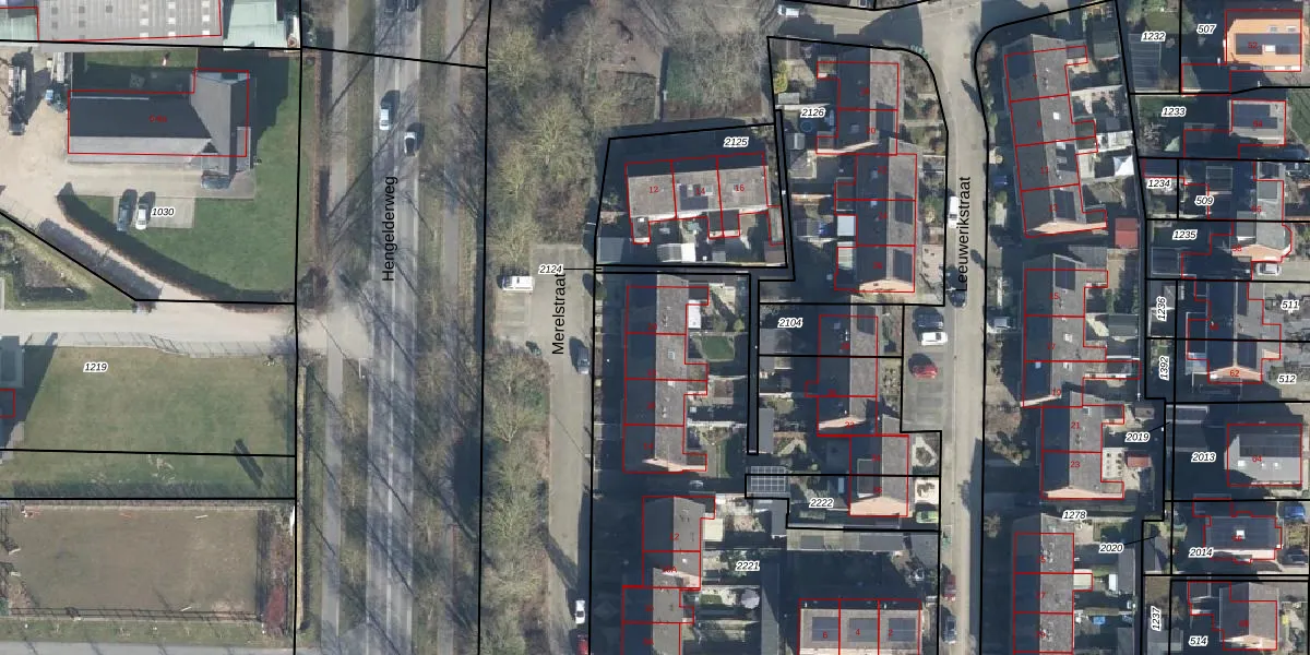 Het perceel waarop Merelstraat 20 staat heeft een oppervlakte van 2847 m². Dit is een zeer groot perceel. De perceeloppervlakte wordt geregistreerd door het Kadaster. Gedetailleerde informatie over de maten van dit perceel kunt u vinden in het rapport Kadastrale kaart met maatvoering van Merelstraat 20.