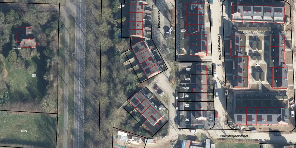 Het perceel waarop Merelstraat 37 staat heeft een oppervlakte van 1260 m². Dit is een zeer groot perceel. De perceeloppervlakte wordt geregistreerd door het Kadaster. Gedetailleerde informatie over de maten van dit perceel kunt u vinden in het rapport Kadastrale kaart met maatvoering van Merelstraat 37.