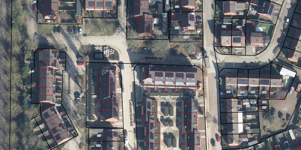 Het perceel waarop Merelstraat 41 staat heeft een oppervlakte van 4065 m². Dit is een zeer groot perceel. De perceeloppervlakte wordt geregistreerd door het Kadaster. Gedetailleerde informatie over de maten van dit perceel kunt u vinden in het rapport Kadastrale kaart met maatvoering van Merelstraat 41.