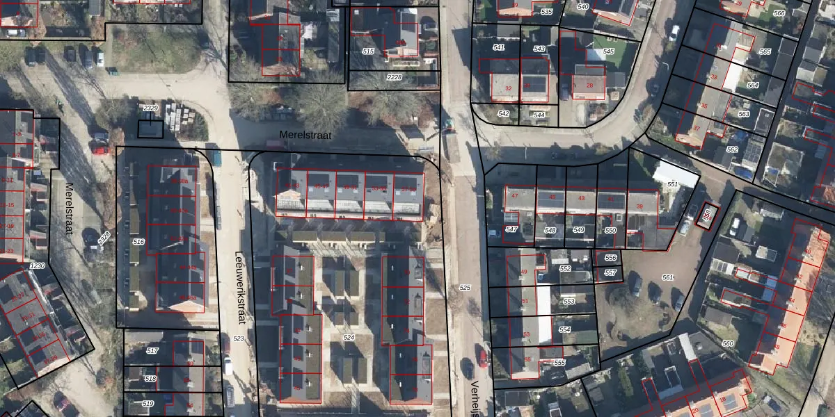 Het perceel waarop Merelstraat 59 staat heeft een oppervlakte van 4065 m². Dit is een zeer groot perceel. De perceeloppervlakte wordt geregistreerd door het Kadaster. Gedetailleerde informatie over de maten van dit perceel kunt u vinden in het rapport Kadastrale kaart met maatvoering van Merelstraat 59.