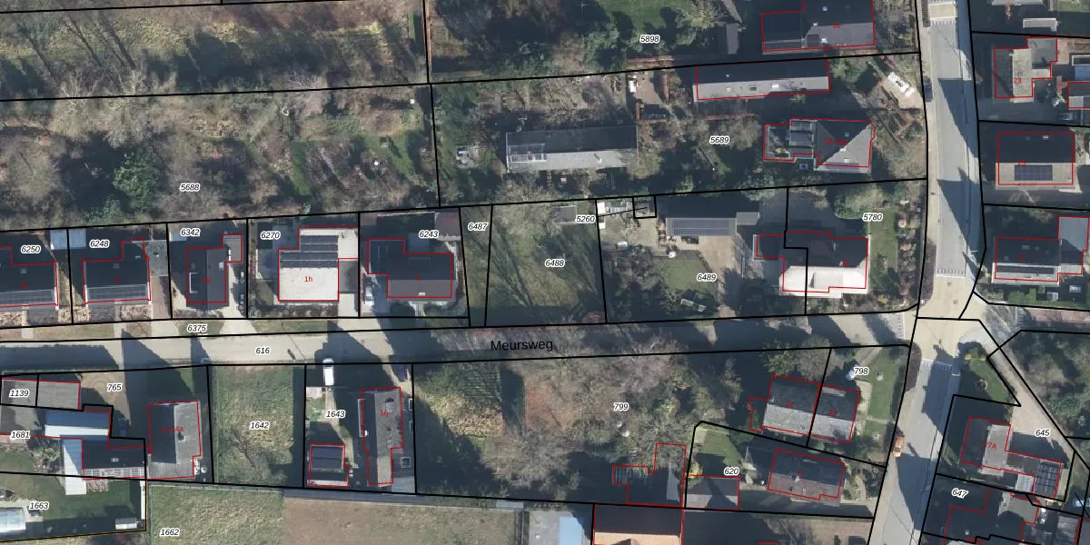 Meursweg 1-k is gelegen op kadastraal perceel DDM00K6488. Deze kadastrale aanduiding is uniek en wordt gebruikt door het Kadaster om eigendomsrechten en andere zakelijke rechten vast te leggen. Het perceel maakt onderdeel uit van de kadastrale gemeente Didam.