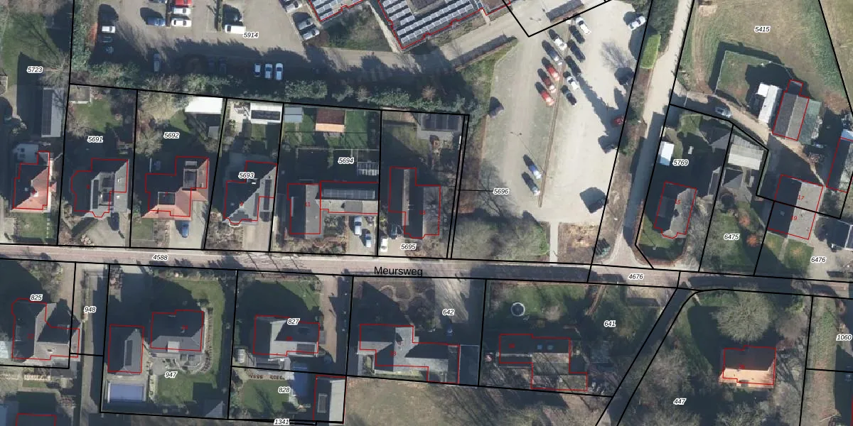 Het perceel waarop Meursweg 13 staat heeft een oppervlakte van 625 m². Dit is een groot perceel. De perceeloppervlakte wordt geregistreerd door het Kadaster. Gedetailleerde informatie over de maten van dit perceel kunt u vinden in het rapport Kadastrale kaart met maatvoering van Meursweg 13.