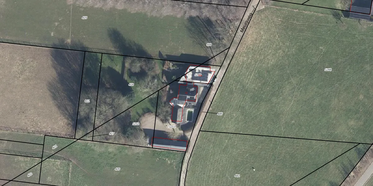 Meursweg 32 is gelegen op kadastraal perceel DDM00N1211. Deze kadastrale aanduiding is uniek en wordt gebruikt door het Kadaster om eigendomsrechten en andere zakelijke rechten vast te leggen. Het perceel maakt onderdeel uit van de kadastrale gemeente Didam.