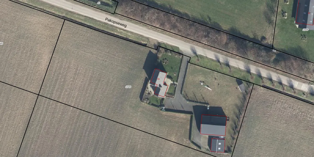 Pakopseweg 10 is gelegen op kadastraal perceel DDM00O1543. Deze kadastrale aanduiding is uniek en wordt gebruikt door het Kadaster om eigendomsrechten en andere zakelijke rechten vast te leggen. Het perceel maakt onderdeel uit van de kadastrale gemeente Didam.