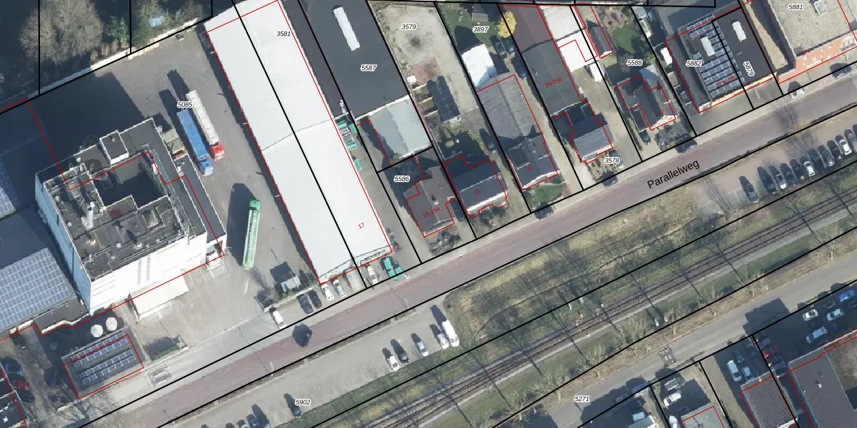 Parallelweg 19-A is gelegen op kadastraal perceel DDM00K5586. Deze kadastrale aanduiding is uniek en wordt gebruikt door het Kadaster om eigendomsrechten en andere zakelijke rechten vast te leggen. Het perceel maakt onderdeel uit van de kadastrale gemeente Didam.