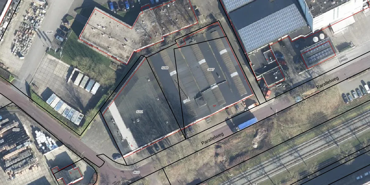 Het perceel waarop Parallelweg 5 staat heeft een oppervlakte van 1600 m². Dit is een zeer groot perceel. De perceeloppervlakte wordt geregistreerd door het Kadaster. Gedetailleerde informatie over de maten van dit perceel kunt u vinden in het rapport Kadastrale kaart met maatvoering van Parallelweg 5.
