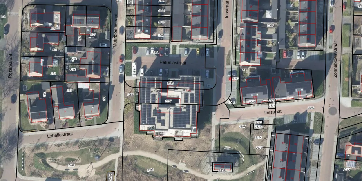 Petuniastraat 50 is gelegen op kadastraal perceel DDM00L2377. Deze kadastrale aanduiding is uniek en wordt gebruikt door het Kadaster om eigendomsrechten en andere zakelijke rechten vast te leggen. Het perceel maakt onderdeel uit van de kadastrale gemeente Didam.