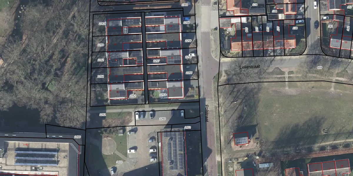 Polstraat 1 is gelegen op kadastraal perceel DDM00L2253. Deze kadastrale aanduiding is uniek en wordt gebruikt door het Kadaster om eigendomsrechten en andere zakelijke rechten vast te leggen. Het perceel maakt onderdeel uit van de kadastrale gemeente Didam.