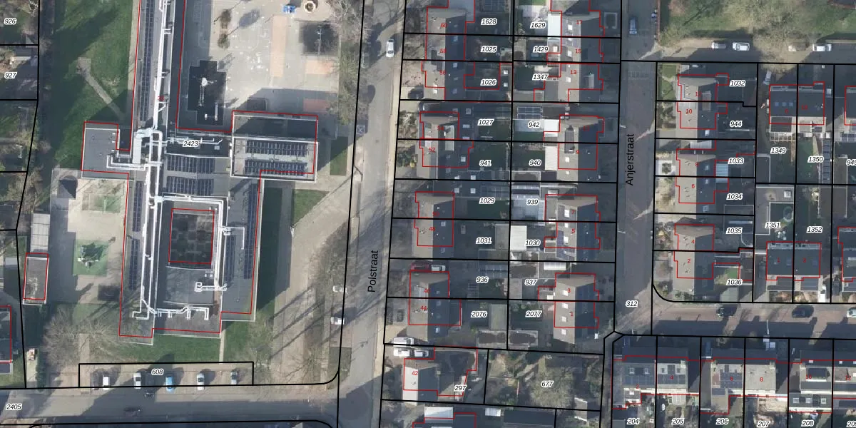 Gebruik de zoekbalk of klik op een perceel voor informatie over de adressen binnen dit perceel.
