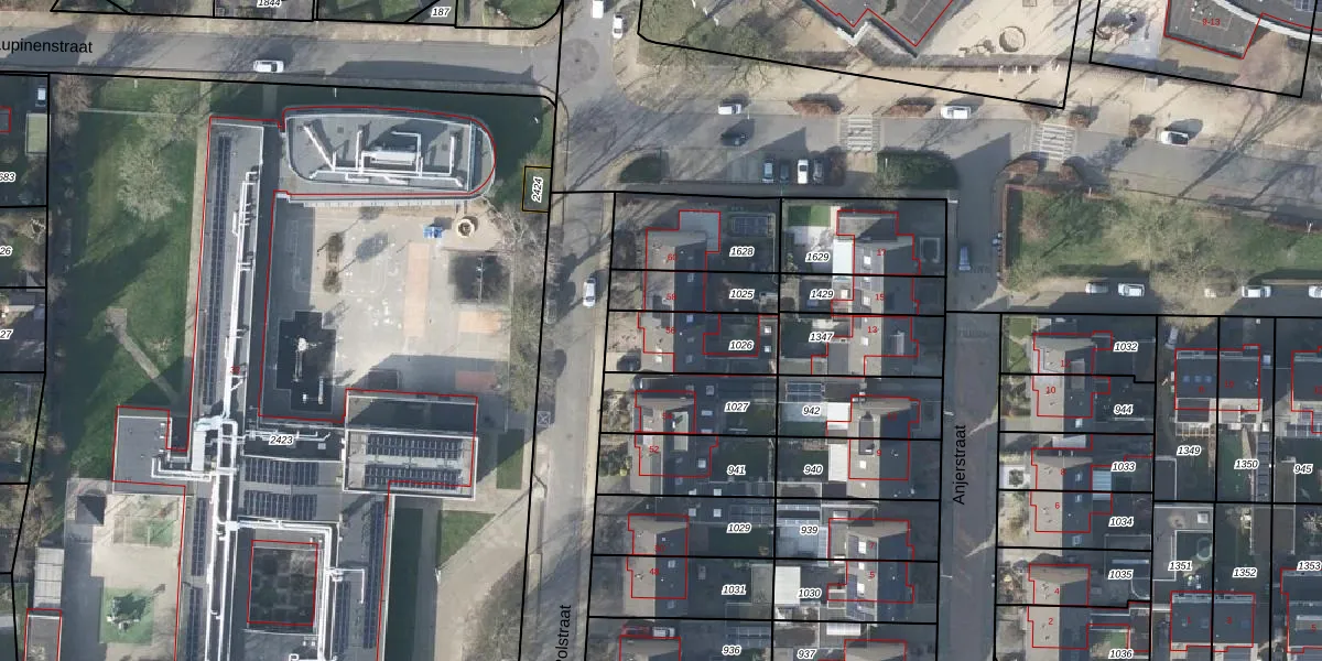 Gebruik de zoekbalk of klik op een perceel voor informatie over de adressen binnen dit perceel.