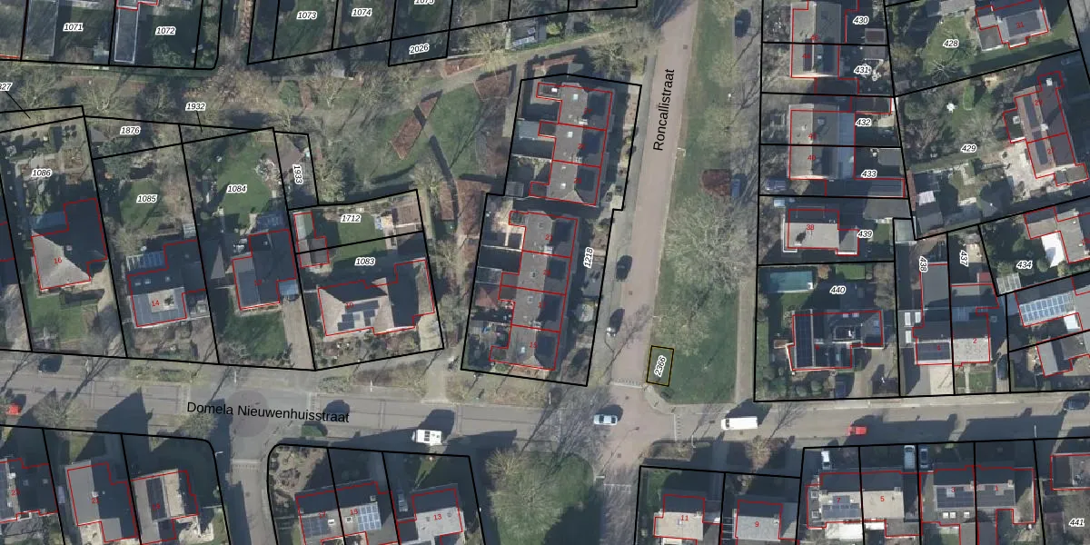 Het perceel waarop Roncallistraat 19 staat heeft een oppervlakte van 1256 m². Dit is een zeer groot perceel. De perceeloppervlakte wordt geregistreerd door het Kadaster. Gedetailleerde informatie over de maten van dit perceel kunt u vinden in het rapport Kadastrale kaart met maatvoering van Roncallistraat 19.