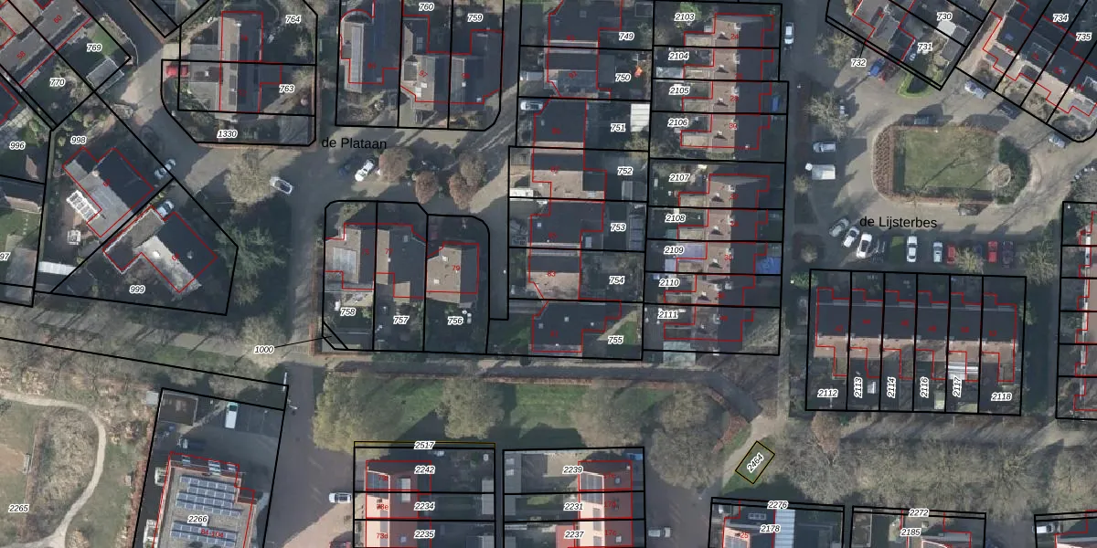 Gebruik de zoekbalk of klik op een perceel voor informatie over de adressen binnen dit perceel.