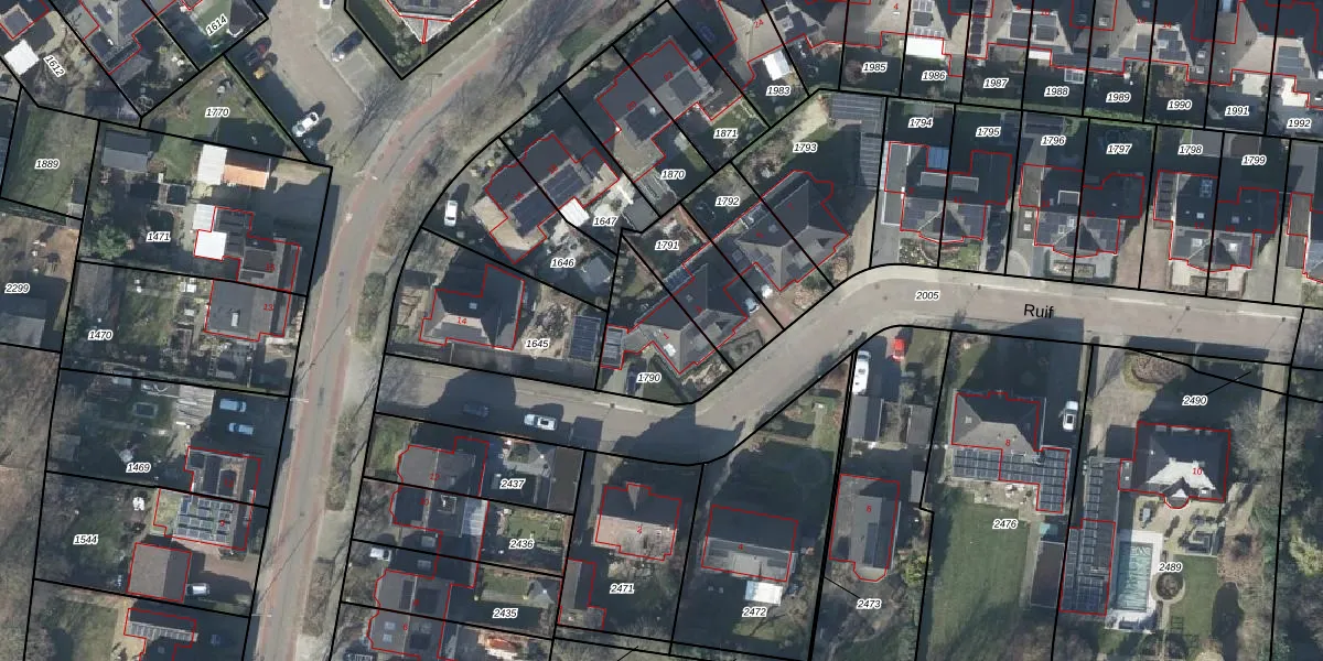 Het perceel waarop Ruif 1 staat heeft een oppervlakte van 290 m². Dit is een middelgroot perceel. De perceeloppervlakte wordt geregistreerd door het Kadaster. Gedetailleerde informatie over de maten van dit perceel kunt u vinden in het rapport Kadastrale kaart met maatvoering van Ruif 1.