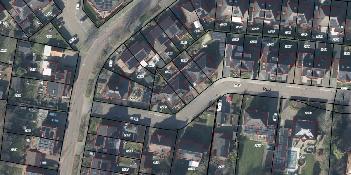 Het perceel waarop Ruif 3 staat heeft een oppervlakte van 251 m². Dit is een middelgroot perceel. De perceeloppervlakte wordt geregistreerd door het Kadaster. Gedetailleerde informatie over de maten van dit perceel kunt u vinden in het rapport Kadastrale kaart met maatvoering van Ruif 3.