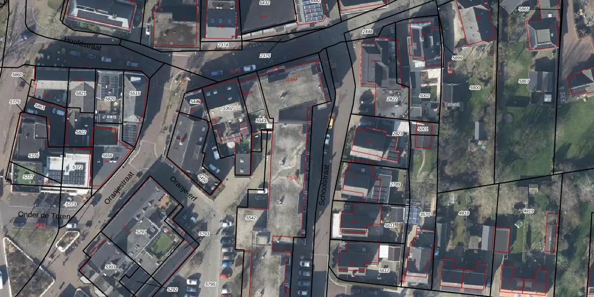 Het perceel waarop Schoolstraat 5-10 staat heeft een oppervlakte van 1845 m². Dit is een zeer groot perceel. De perceeloppervlakte wordt geregistreerd door het Kadaster. Gedetailleerde informatie over de maten van dit perceel kunt u vinden in het rapport Kadastrale kaart met maatvoering van Schoolstraat 5-10.