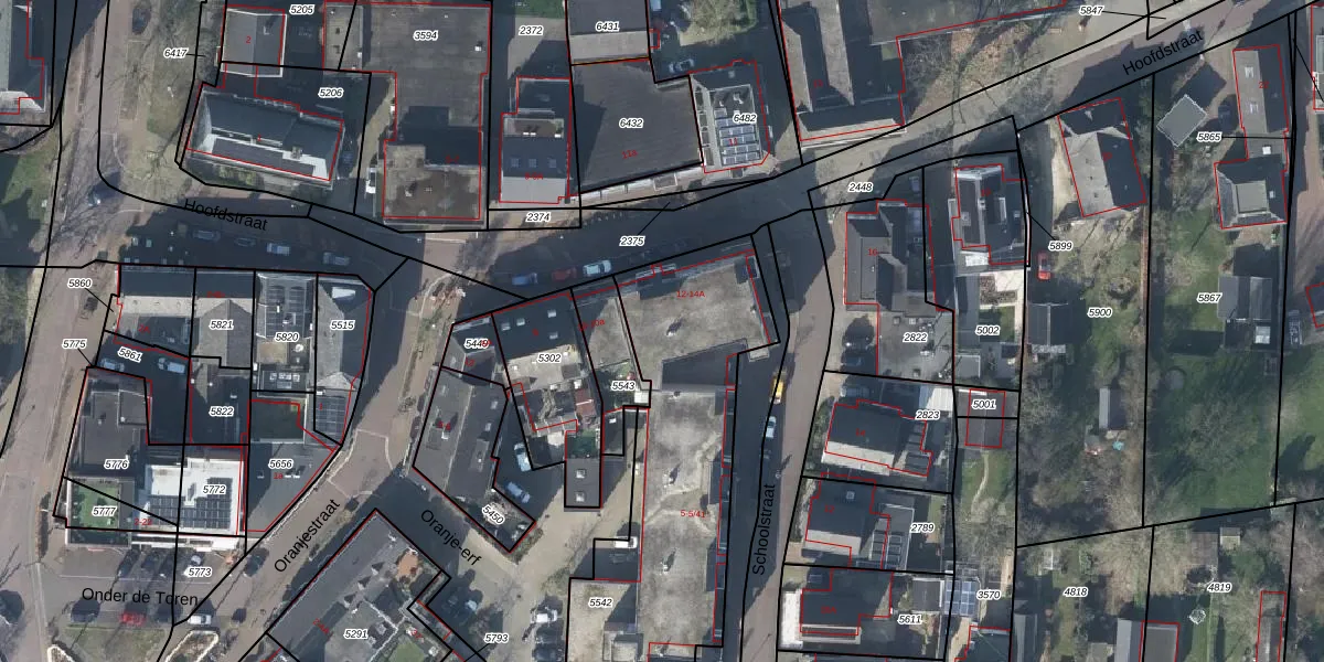 Het perceel waarop Schoolstraat 5-24 staat heeft een oppervlakte van 1845 m². Dit is een zeer groot perceel. De perceeloppervlakte wordt geregistreerd door het Kadaster. Gedetailleerde informatie over de maten van dit perceel kunt u vinden in het rapport Kadastrale kaart met maatvoering van Schoolstraat 5-24.