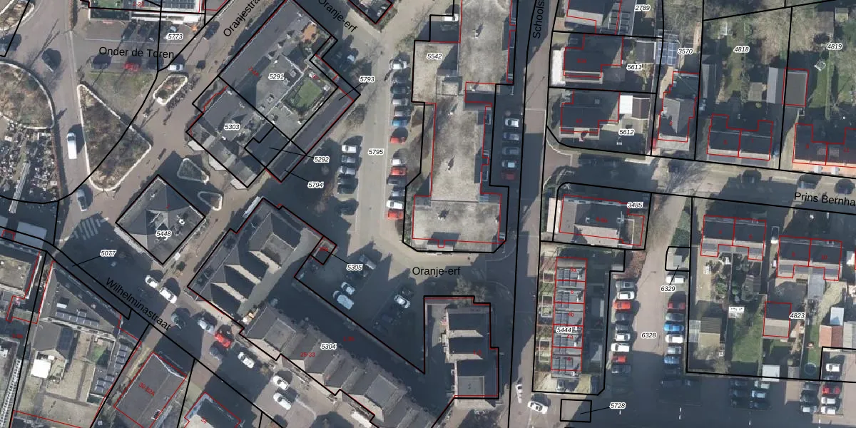 Het perceel waarop Schoolstraat 5-30 staat heeft een oppervlakte van 1845 m². Dit is een zeer groot perceel. De perceeloppervlakte wordt geregistreerd door het Kadaster. Gedetailleerde informatie over de maten van dit perceel kunt u vinden in het rapport Kadastrale kaart met maatvoering van Schoolstraat 5-30.