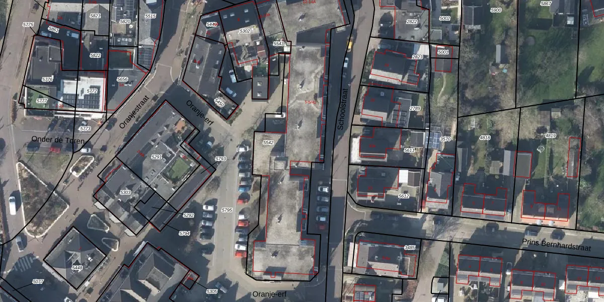 Het perceel waarop Schoolstraat 5-33 staat heeft een oppervlakte van 1845 m². Dit is een zeer groot perceel. De perceeloppervlakte wordt geregistreerd door het Kadaster. Gedetailleerde informatie over de maten van dit perceel kunt u vinden in het rapport Kadastrale kaart met maatvoering van Schoolstraat 5-33.