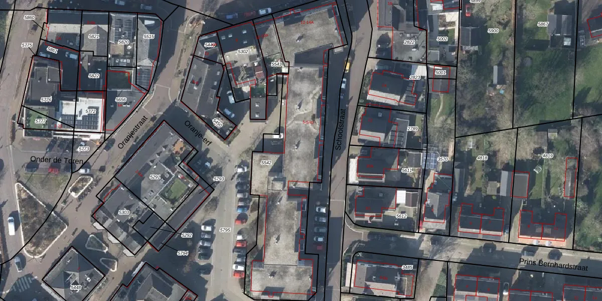 Het perceel waarop Schoolstraat 5-34 staat heeft een oppervlakte van 1845 m². Dit is een zeer groot perceel. De perceeloppervlakte wordt geregistreerd door het Kadaster. Gedetailleerde informatie over de maten van dit perceel kunt u vinden in het rapport Kadastrale kaart met maatvoering van Schoolstraat 5-34.