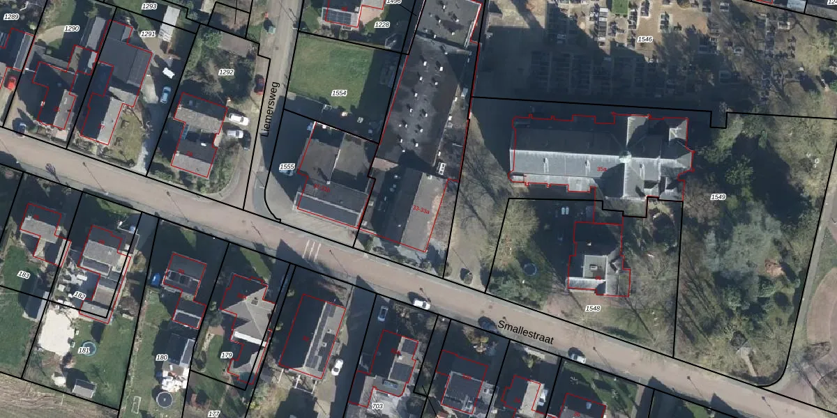 Het perceel waarop Smallestraat 33 staat heeft een oppervlakte van 1447 m². Dit is een zeer groot perceel. De perceeloppervlakte wordt geregistreerd door het Kadaster. Gedetailleerde informatie over de maten van dit perceel kunt u vinden in het rapport Kadastrale kaart met maatvoering van Smallestraat 33.