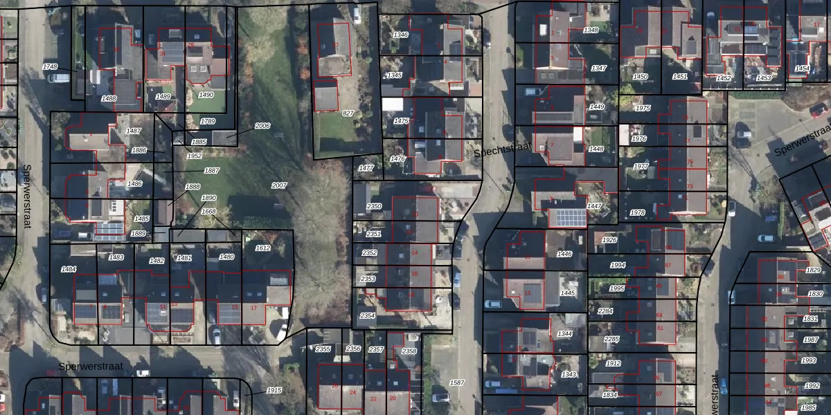 Het perceel waarop Spechtstraat 10 staat heeft een oppervlakte van 287 m². Dit is een middelgroot perceel. De perceeloppervlakte wordt geregistreerd door het Kadaster. Gedetailleerde informatie over de maten van dit perceel kunt u vinden in het rapport Kadastrale kaart met maatvoering van Spechtstraat 10.