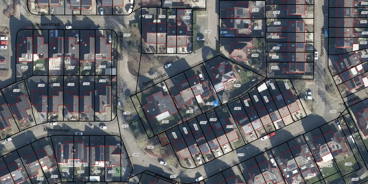 Het perceel waarop Spechtstraat 25 staat heeft een oppervlakte van 289 m². Dit is een middelgroot perceel. De perceeloppervlakte wordt geregistreerd door het Kadaster. Gedetailleerde informatie over de maten van dit perceel kunt u vinden in het rapport Kadastrale kaart met maatvoering van Spechtstraat 25.