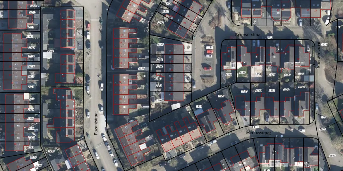 Gebruik de zoekbalk of klik op een perceel voor informatie over de adressen binnen dit perceel.
