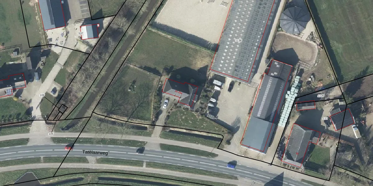 Tatelaarweg 28 is gelegen op kadastraal perceel DDM00R1136. Deze kadastrale aanduiding is uniek en wordt gebruikt door het Kadaster om eigendomsrechten en andere zakelijke rechten vast te leggen. Het perceel maakt onderdeel uit van de kadastrale gemeente Didam.