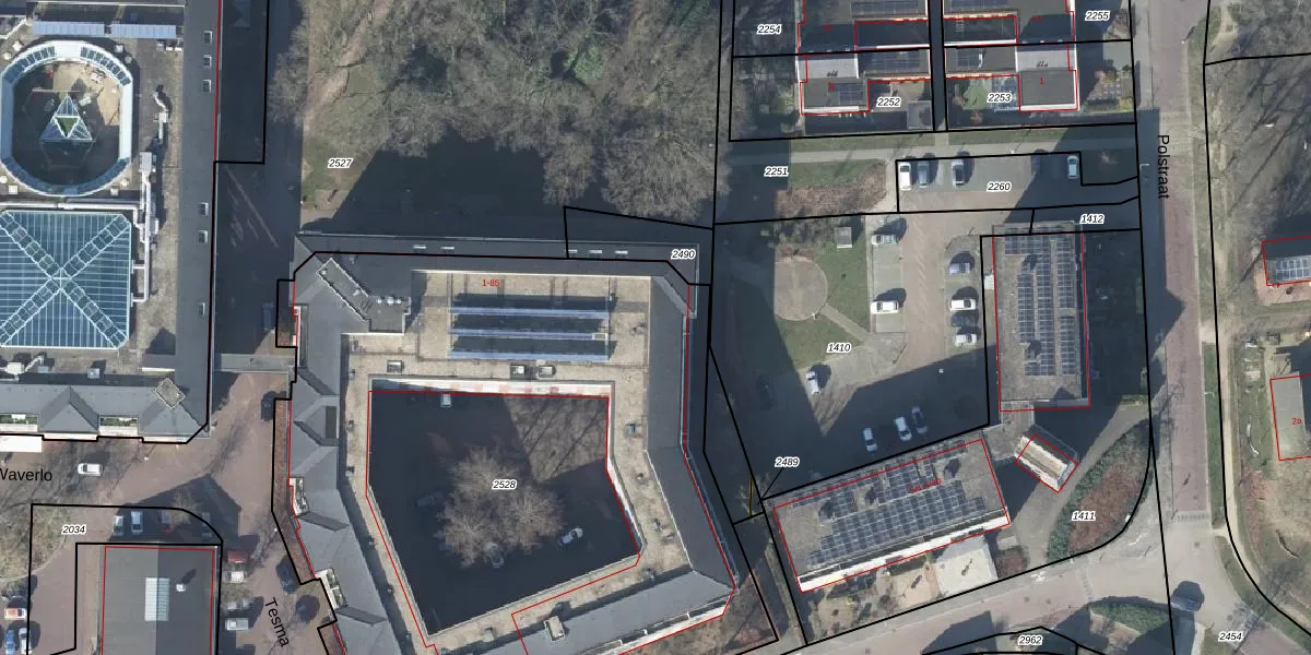 Het perceel waarop Tesma 32 staat heeft een oppervlakte van 4575 m². Dit is een zeer groot perceel. De perceeloppervlakte wordt geregistreerd door het Kadaster. Gedetailleerde informatie over de maten van dit perceel kunt u vinden in het rapport Kadastrale kaart met maatvoering van Tesma 32.