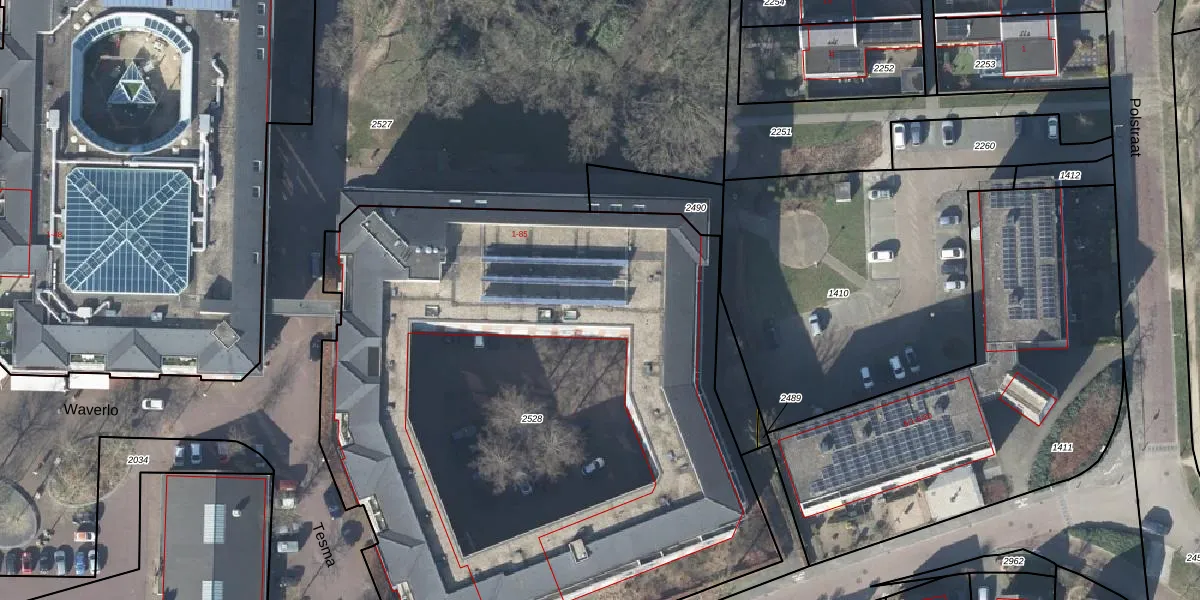 Het perceel waarop Tesma 47 staat heeft een oppervlakte van 4575 m². Dit is een zeer groot perceel. De perceeloppervlakte wordt geregistreerd door het Kadaster. Gedetailleerde informatie over de maten van dit perceel kunt u vinden in het rapport Kadastrale kaart met maatvoering van Tesma 47.