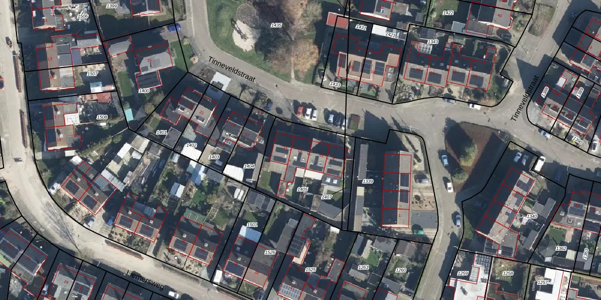 Tinneveldstraat 13 is gelegen op kadastraal perceel DDM00G1405. Deze kadastrale aanduiding is uniek en wordt gebruikt door het Kadaster om eigendomsrechten en andere zakelijke rechten vast te leggen. Het perceel maakt onderdeel uit van de kadastrale gemeente Didam.
