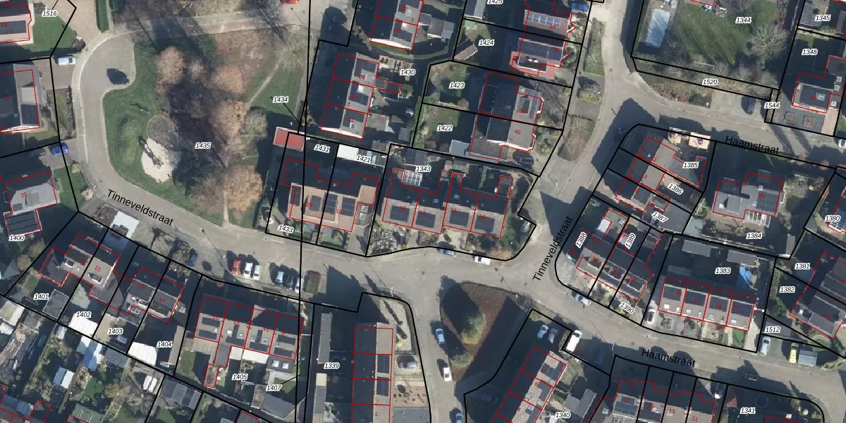 Tinneveldstraat 14 is gelegen op kadastraal perceel DDM00G1343. Deze kadastrale aanduiding is uniek en wordt gebruikt door het Kadaster om eigendomsrechten en andere zakelijke rechten vast te leggen. Het perceel maakt onderdeel uit van de kadastrale gemeente Didam.