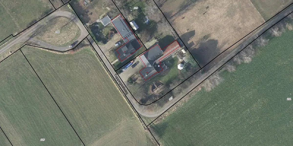 Toppegaaiweg 7-a is gelegen op kadastraal perceel DDM00O229. Deze kadastrale aanduiding is uniek en wordt gebruikt door het Kadaster om eigendomsrechten en andere zakelijke rechten vast te leggen. Het perceel maakt onderdeel uit van de kadastrale gemeente Didam.