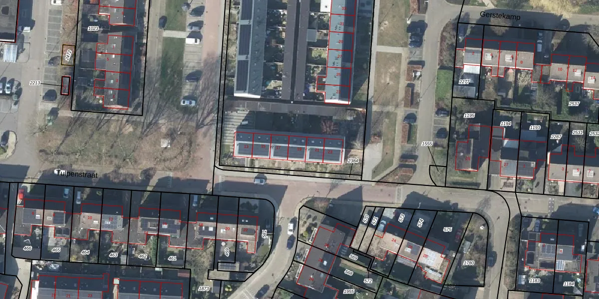 Het perceel waarop Tulpenstraat 19 staat heeft een oppervlakte van 7153 m². Dit is een zeer groot perceel. De perceeloppervlakte wordt geregistreerd door het Kadaster. Gedetailleerde informatie over de maten van dit perceel kunt u vinden in het rapport Kadastrale kaart met maatvoering van Tulpenstraat 19.