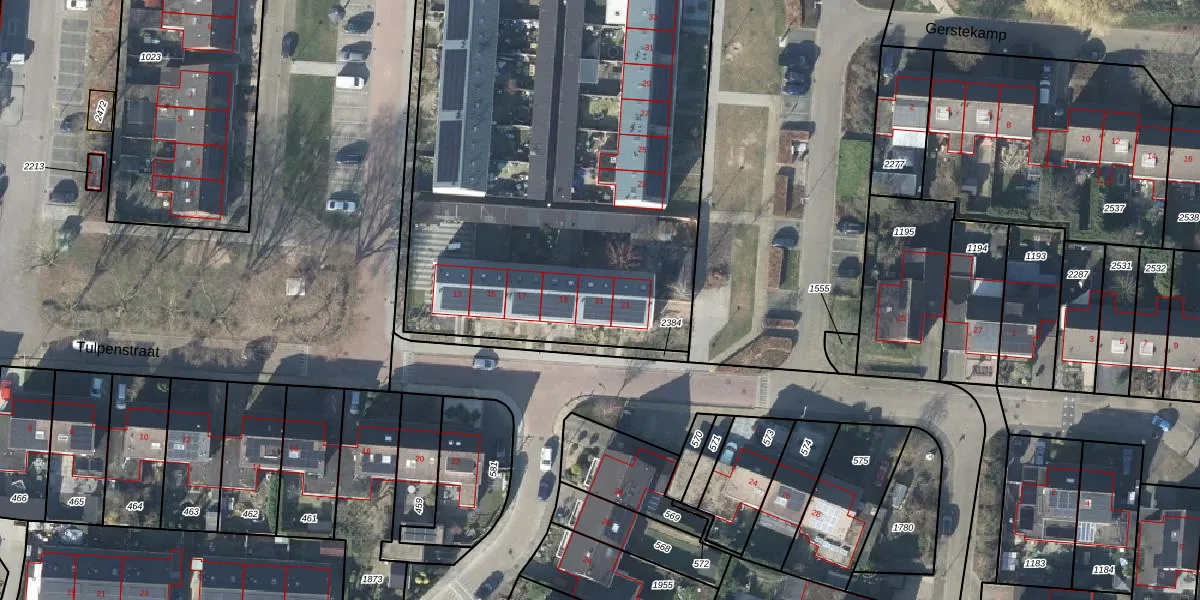 Tulpenstraat 21 is gelegen op kadastraal perceel DDM00L2385. Deze kadastrale aanduiding is uniek en wordt gebruikt door het Kadaster om eigendomsrechten en andere zakelijke rechten vast te leggen. Het perceel maakt onderdeel uit van de kadastrale gemeente Didam.