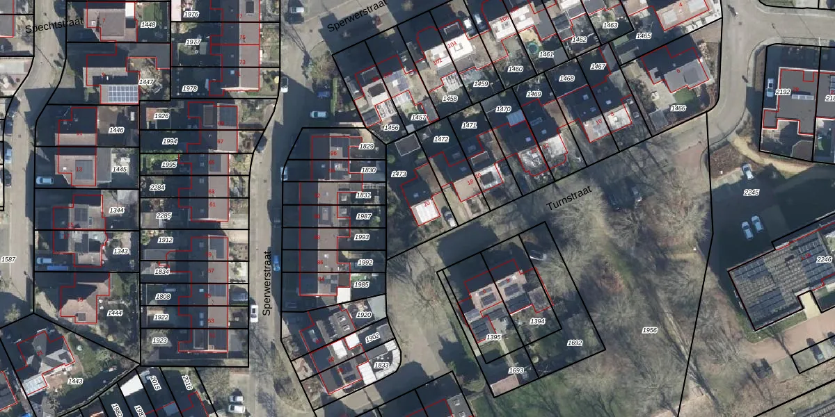 Het perceel waarop Turnstraat 20 staat heeft een oppervlakte van 334 m². Dit is een groot perceel. De perceeloppervlakte wordt geregistreerd door het Kadaster. Gedetailleerde informatie over de maten van dit perceel kunt u vinden in het rapport Kadastrale kaart met maatvoering van Turnstraat 20.