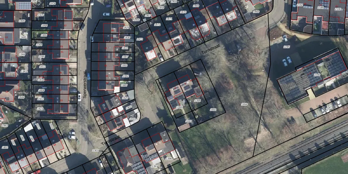 Gebruik de zoekbalk of klik op een perceel voor informatie over de adressen binnen dit perceel.