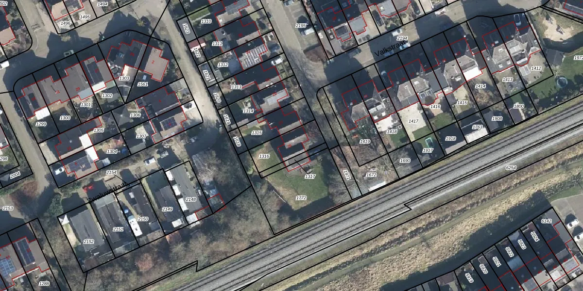 Valkstraat 25 is gelegen op kadastraal perceel DDM00M1316. Deze kadastrale aanduiding is uniek en wordt gebruikt door het Kadaster om eigendomsrechten en andere zakelijke rechten vast te leggen. Het perceel maakt onderdeel uit van de kadastrale gemeente Didam.