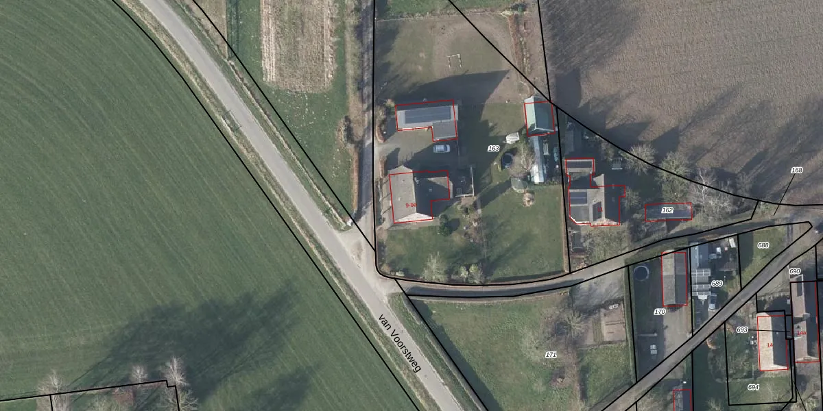 van Voorstweg 9 is gelegen op kadastraal perceel DDM00P163. Deze kadastrale aanduiding is uniek en wordt gebruikt door het Kadaster om eigendomsrechten en andere zakelijke rechten vast te leggen. Het perceel maakt onderdeel uit van de kadastrale gemeente Didam.